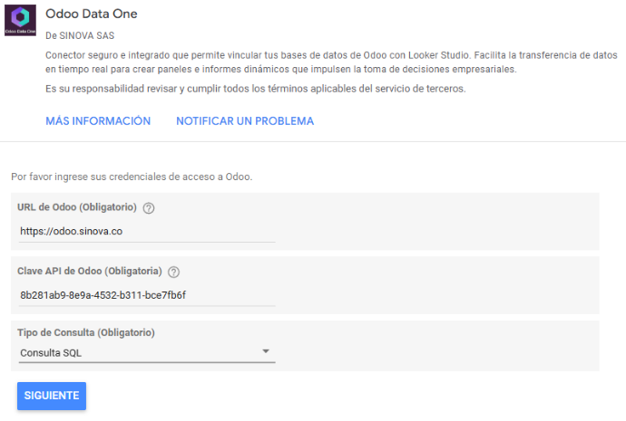 📌 Permite una conexión segura e integrada entre las bases de datos de Odoo y la plataforma de visualización Looker Studio, facilitando la transferencia de datos en tiempo real para la creación de paneles e informes comerciales.